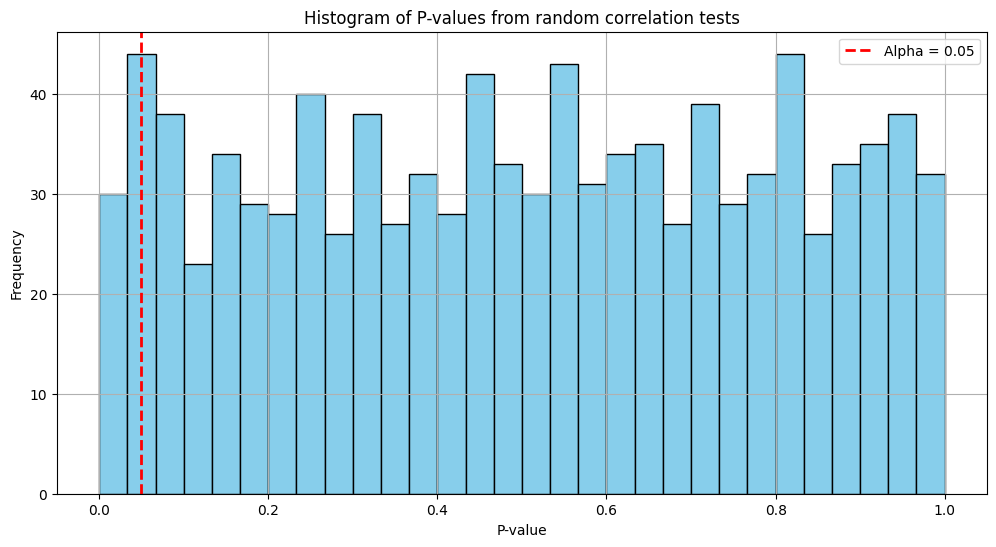 print(f"Number of significant results (p < {alpha}): {significant_results} out of {N_tests}")