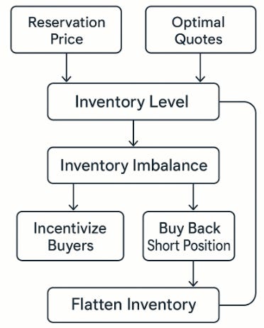 The model essentially turns inventory management into a feedback control system. Your current inventory level is the system's state variable, and the reservation price and optimal quotes are the control signals designed to steer that state towards zero.