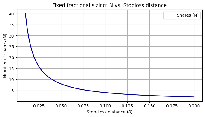 Let’s implement it with a plot that shows how the number of shares changes as the stop-loss distance increases.