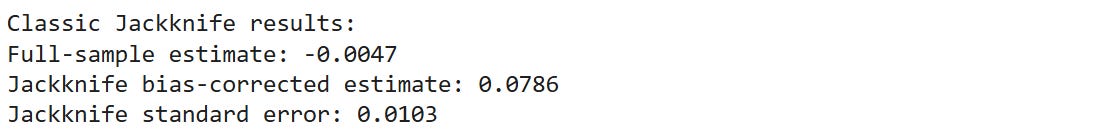 print(f"Jackknife standard error: {se_jack:.4f}")The output is: