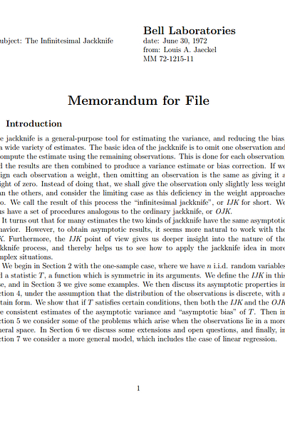 If you like the topic, the depth is insane. Check out this PDF about infinitesimal Jackknife: