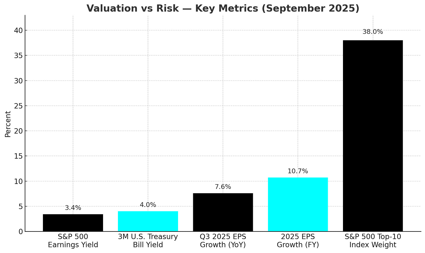 Valuations, negative ERP, and a selective, real-asset tilt for Q4 2025