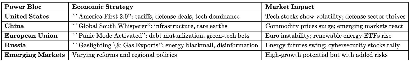 Multipolarity means global power is now divided among several key playersโthe U.S., China, the European Union, Russia, and emerging markets. Each regionโs policy decisions can send ripples across different sectors of the market.