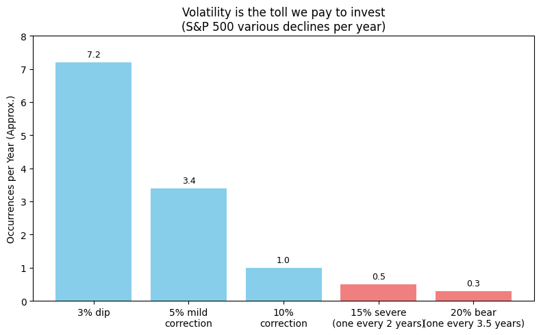 5% Corrections: Happen roughly 3.4 times a year. These moves are more pronounced but still within the expected range.