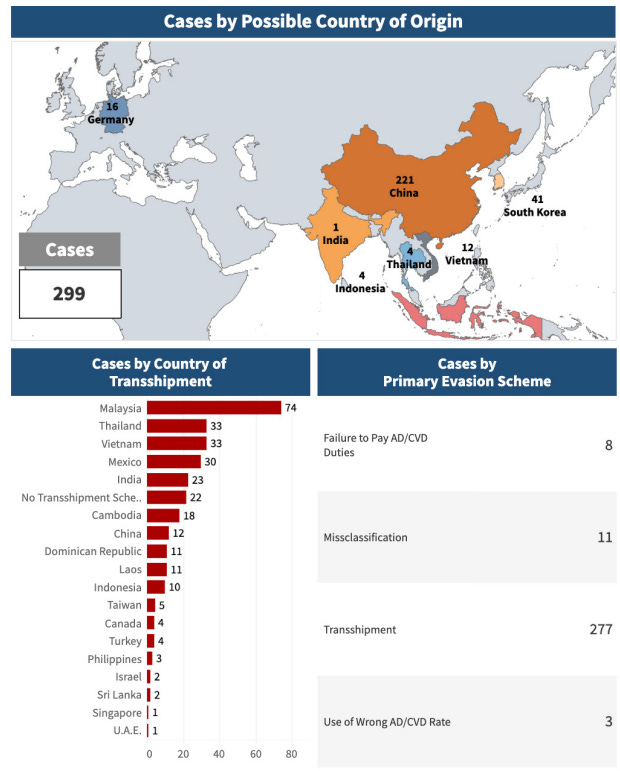 Top categories susceptible to re-routing include machinery and electronics–areas where China’s share of U.S. imports fell as tariffs hit. Notably, Vietnam’s exports of solar panels to the U.S. rocketed from $0.5B in 2016 to $2.5B in 2020, mirroring a surge in its imports of Chinese solar panels. Similar patterns are observed in other goods—e.g. electrical converters via Mexico. These trends point to deliberate country of origin swapping. U.S. authorities have responded with investigations and steep penalties – e.g. plans for tariffs up to 3,521% on solar cells from Vietnam, Thailand, Malaysia, Cambodia—alleging Chinese-origin cells.