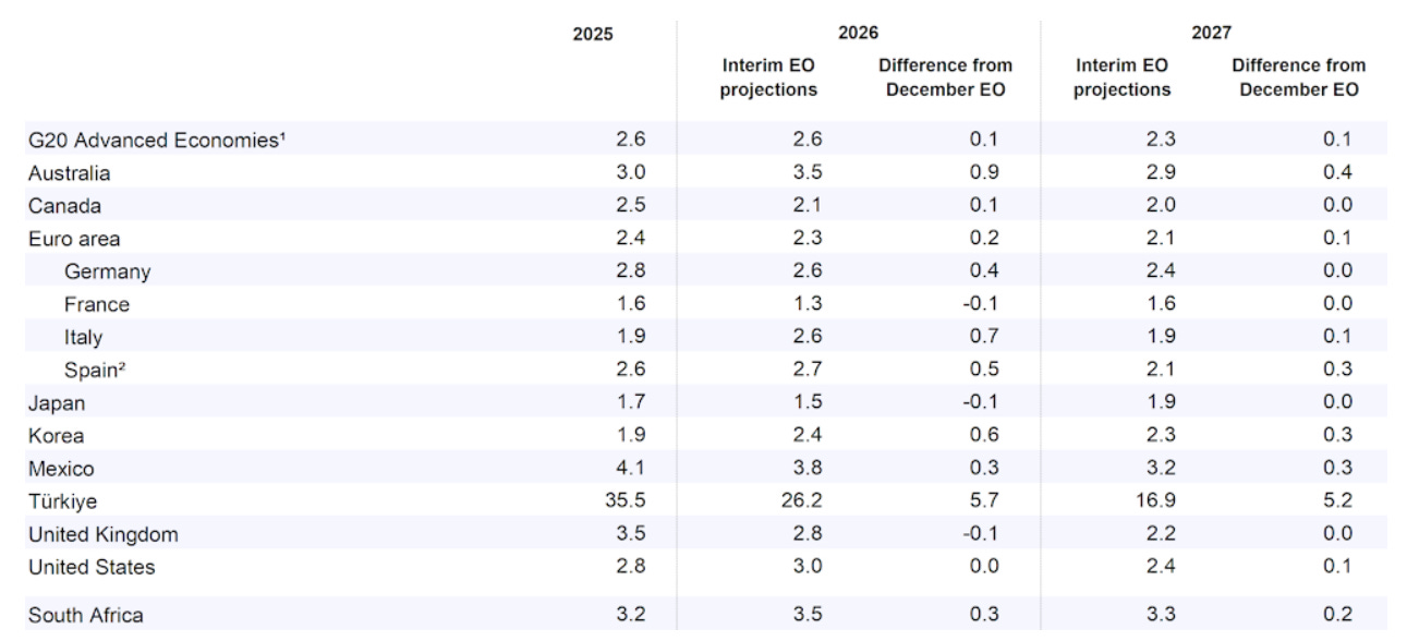 The inflation story reflects this shift with unusual clarity. The IMF’s update expected global inflation to fall, projecting headline inflation at 3.8% in 2026 and 3.4% in 2027. That forecast came from a world in which supply conditions improved, commodity pricing eased from earlier extremes, and private adaptation softened the impact of trade-policy friction. The OECD’s update already incorporates the war shock. It projects G20 inflation at 4.0% in 2026, which is 1.2 percentage points higher than it expected before the conflict escalated, before easing to 2.7% in 2027 under the assumption that energy pressures fade. This difference between the January IMF view and the March OECD view is one of the cleanest expressions of the regime change. It shows how quickly a global disinflation narrative can bend when energy, logistics, and risk premia move together.