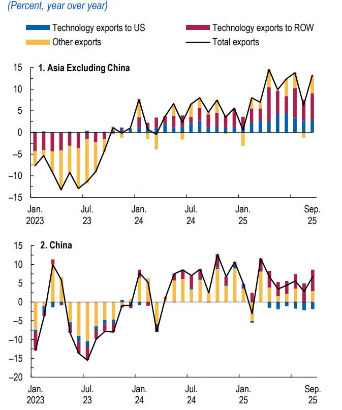 The tension between those two engines defines the whole macro regime. The first engine still matters because technology investment remains large, especially in sectors tied to artificial intelligence, semiconductors, cloud infrastructure, industrial automation, and the digital build-out of the energy and security complex. The IMF highlighted strong performance in exports of semiconductors and related equipment across Asian economies and linked that strength to the rise in information and technology investment. That matters because a technology-led capex cycle creates growth through many channels at once. It supports equipment orders, lifts productivity expectations, raises corporate spending, improves cash-flow visibility for firms near the center of the build-out, and attracts capital toward the economies that lead those value chains. This is one reason the United States has strong relative support. It is also one reason parts of East Asia carried stronger industrial momentum into the year than many analysts expected at the end of 2025.