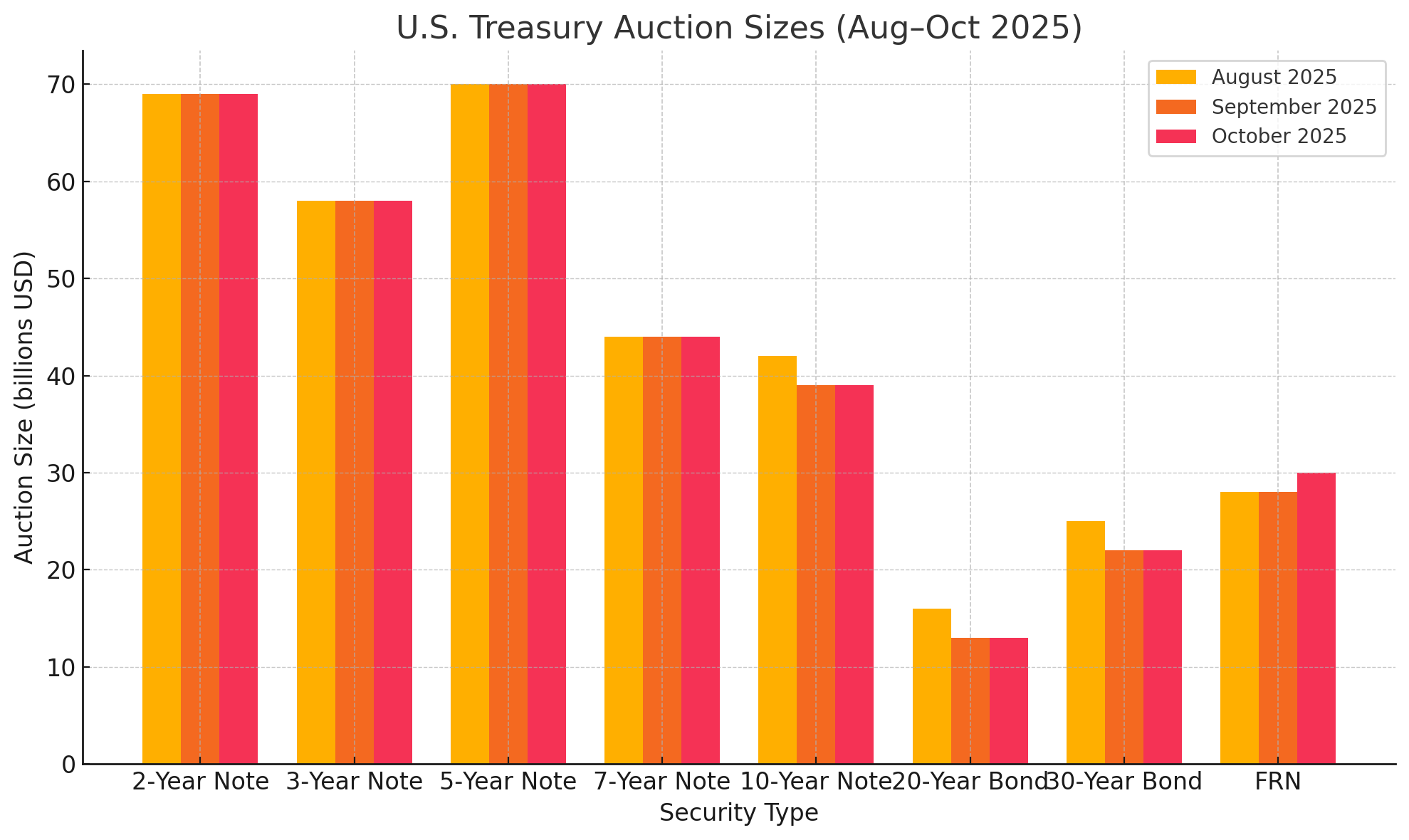 The Treasury's strategic pivot toward short-term debt is not a matter of speculation; it is explicitly detailed in its latest official communications. The Quarterly Refunding Statement for August 2025 provides a clear and quantitative confirmation of this policy. The announcement states unequivocally that the Treasury anticipates maintaining nominal coupon and FRN auction sizes for at least the next several quarters. This means that the supply of medium-term notes (2, 3, 5, 7, and 10-year) and long-term bonds (20 and 30-year) will remain static, despite enormous government financing needs.