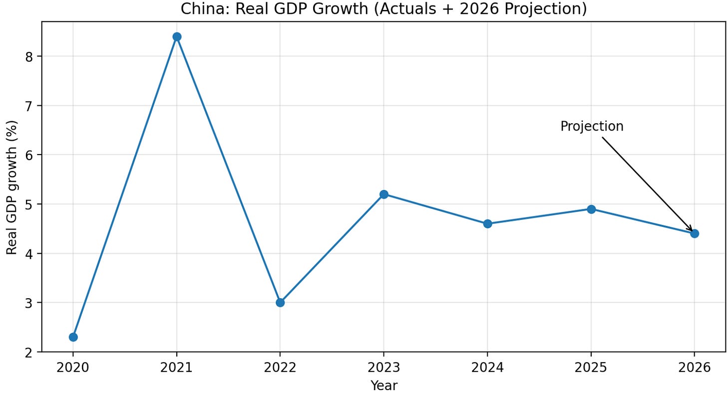 Government spending and infrastructure have also supported growth – Beijing leaned on a proactive fiscal policy in 2025, accelerating project approvals and special bond issuance to prop up investment. Meanwhile, net exports provided a smaller contribution amid slowing global trade, but demand from emerging markets (many of them BRI and BRICS partners) offered a buffer as developed-market demand softened. For 2026, the World Bank projects further easing to ~4.4% growth as property and external headwinds persist, barring more forceful stimulus.