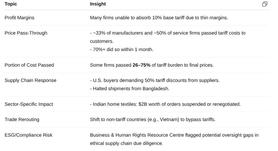 The impact of these tariffs on corporate entities has been immediate. Many companies, especially those with limited financial strength or thin profit margins, are finding it difficult to absorb the base 10% tariff. Evidence strongly indicates that companies are rapidly passing these increased costs onto consumers.