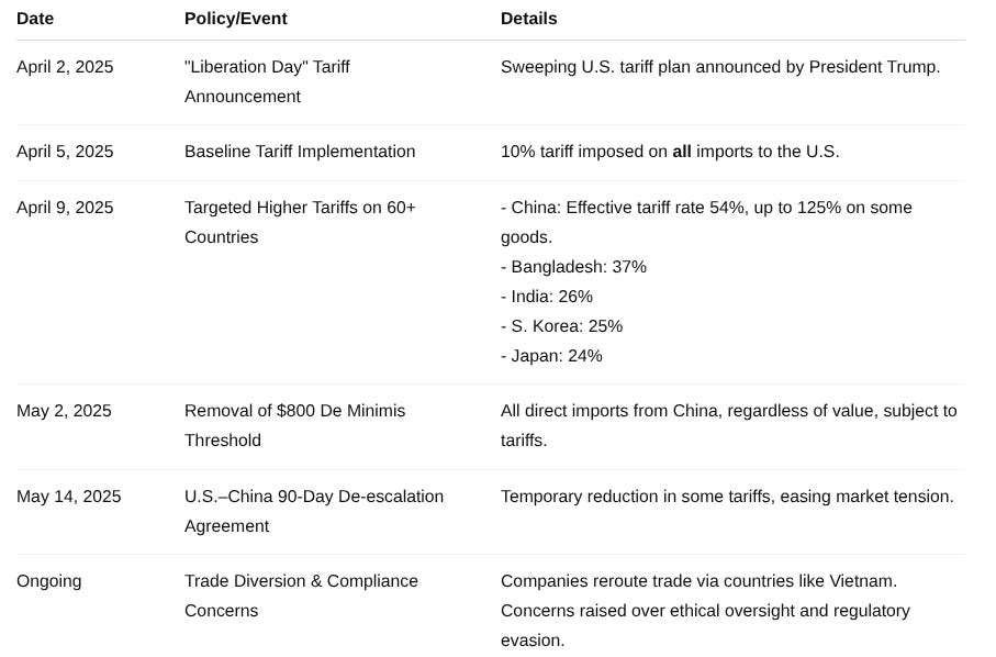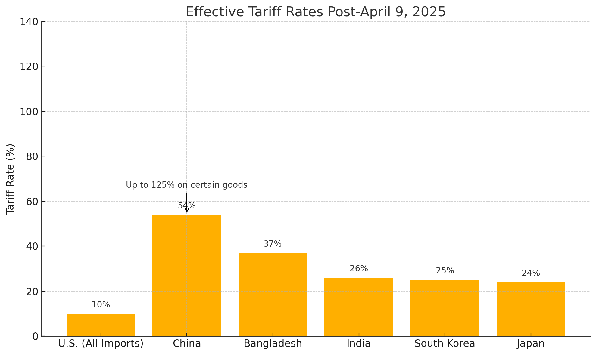 The global trade landscape continues to be defined by escalating tariffs, particularly following the U.S. administration's recent actions. On April 2, 2025, a significant policy shift occurred, dubbed Liberation Day by President Trump, as sweeping new tariffs were enacted. This initiative imposed a baseline 10% tariff on all imports to the U.S., effective April 5, 2025, with even higher tariffs targeting approximately 60 additional countries, effective April 9, 2025. China faced the most substantial increases, with an effective tariff rate soaring to 54% after April 9, building upon existing levies, culminating in an overall rate of 125% on certain Chinese goods. Other nations, including Bangladesh (37%), India (26%), South Korea (25%), and Japan (24%), also saw considerable tariff hikes. A notable procedural change was the elimination of the $800 de minimis threshold for duty-free imports from China on May 2, 2025, effectively making small direct consumer purchases economically unfeasible.