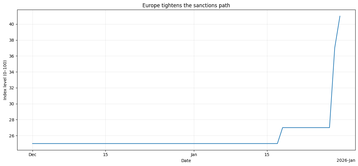 This matters because it places Europe’s sanctions momentum alongside Middle East escalation risk. That pairing is not accidental. Sanctions are a second channel of escalation. When military geometry is constrained, policy geometry often tightens instead. Markets price that as a regime shift toward persistent friction, which is a different macro environment than 2010s smooth trade assumptions.