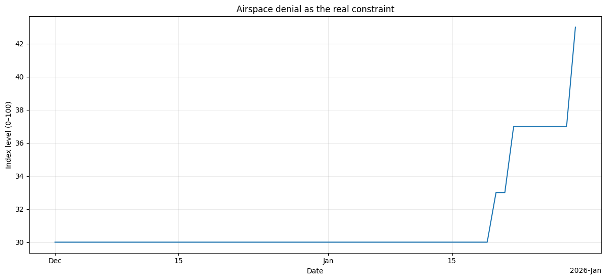 Motif 2: Airspace denial as the real constraint.