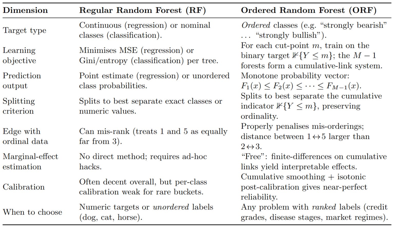 The truth is, there aren't many algorithms in the literature that model ordered eventsβpretty suitable for news trading. So let's look at a classic: Ordered Random Forests. Less random and more ordered. There are substantial differences when choosing which type of model to use in trading. It's common to see quants using the traditional random forest. But what advantages are there in choosing one over the other?