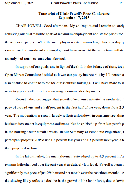 Chairman Jerome Powell has carefully framed this decision not as a response to an imminent crisis, but as a risk-management cut. The Committee's official statement provides the critical context, highlighting a change of balance of risk and explicitly judging that downside risks to employment have risen. For the first time in this cycle, the labor market has been elevated above inflation as the Fed's primary near-term concern.