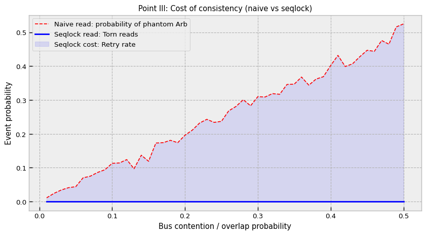 return s1 == s2 # VerificationThis defines a consistency domain. All fields inside arr are guaranteed to be from the same logical timestamp if read() returns True. This effectively eliminates a class of synchronization errors where the strategy acts on state combinations that never existed in reality. It shifts the cost of concurrency from the writer (who must never block) to the reader (who must occasionally retry), which aligns perfectly with the priorities of a trading system.
