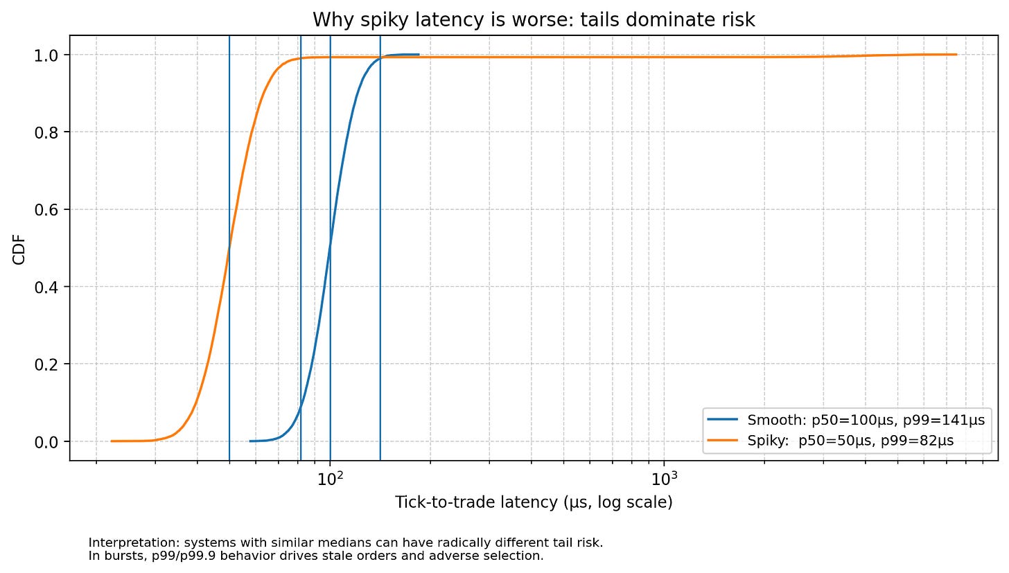 Most teams treat that tax as an engineering inconvenience: optimize later, refactor later, rewrite later. But latency is not a single number you improve. The market doesn’t care about your median. It cares about the rare stalls that occur during stress, when queues build, spreads widen, and your signal’s half-life collapses. Those stalls are where good research becomes a losing business.