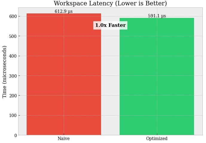 print("\nWorkspace vs Implicit Alloc (N=100k) ---")