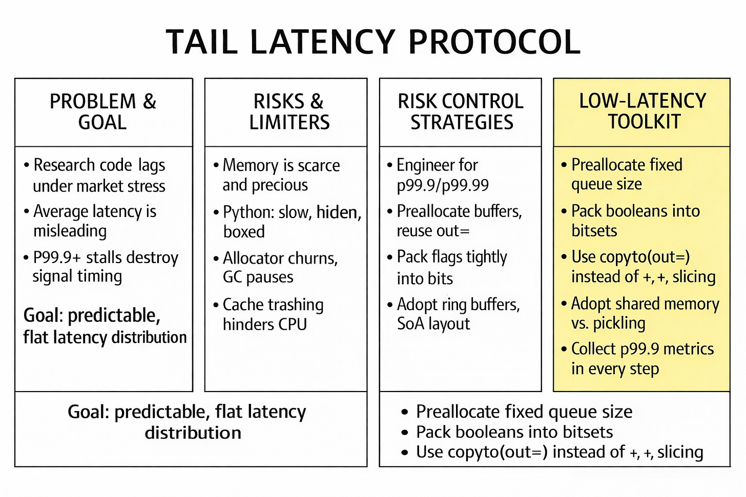 What follows is a practical framework for designing that boringness: treating tail latency as a first-class risk metric, treating memory bandwidth as a scarce resource, and treating the allocator as a hazard to be removed from the hot path.