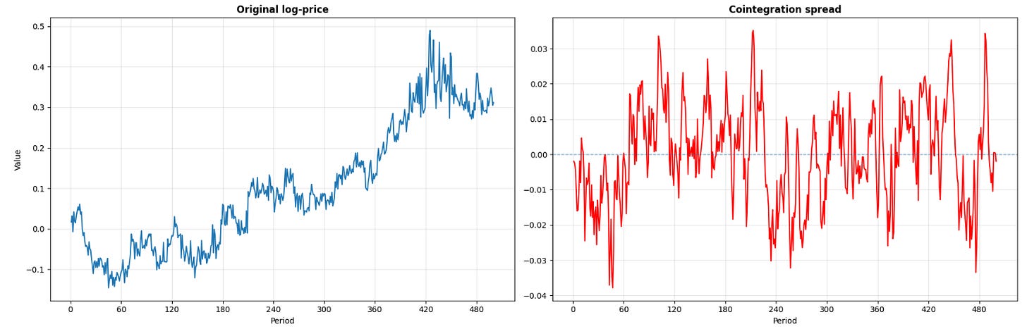 In this structural equation, λ represents the speed-of-adjustment coefficient, and it is the most critical parameter in the relative-value strategy. The predictive alpha is not contained in the absolute nominal level of yt or xt. The actionable alpha is isolated within st-1, the exact geometric distance from equilibrium. By executing this transformation, the researcher compresses the shared macroeconomic drift and aligns the input feature with the logic of convergence.