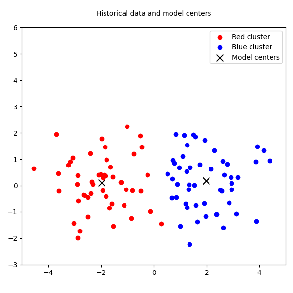 To visualize this failure, we can use a simple plot. Imagine the red and blue clusters are our historical data. The batch model finds their centersβthe black X's. Then, a new green cluster appears. The batch model has no choice but to misclassify all the green points as belonging to the blue cluster, because its structure is frozen.
