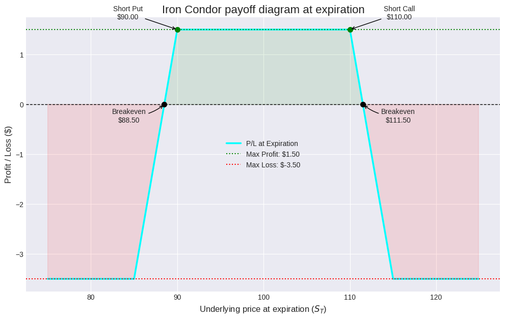 Calculates the P/L of an Iron Condor at expiration.