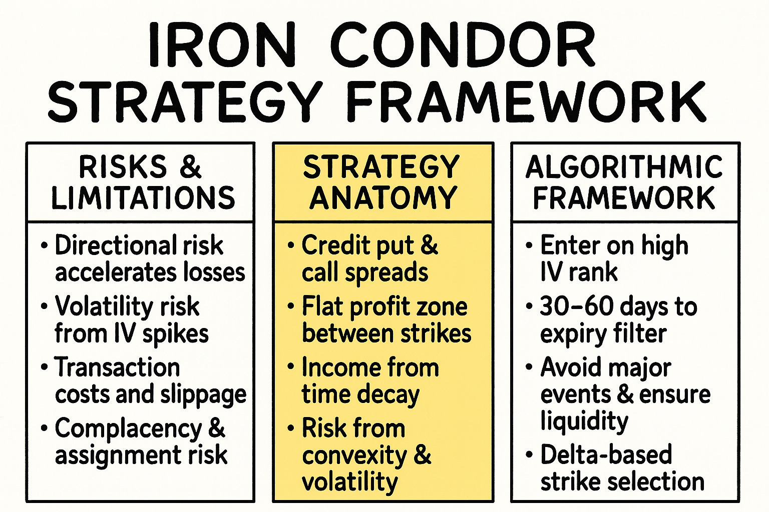 This isnโt a retail-trader cautionary tale. For systematic traders, the challenge is structural: How do you isolate and neutralize the latent risks that backtests obscure? Static payoff diagrams ignore the path-dependent dynamics of the Greeks; naive strike selection ignores volatility surface curvature; and "set-and-forget" execution ignores real-world market microstructure. The solution demands a rigorous, adaptive frameworkโone that treats the iron condor not as a static trade, but as a dynamic system requiring continuous recalibration of risk exposure, strike selection, and adjustment triggers.