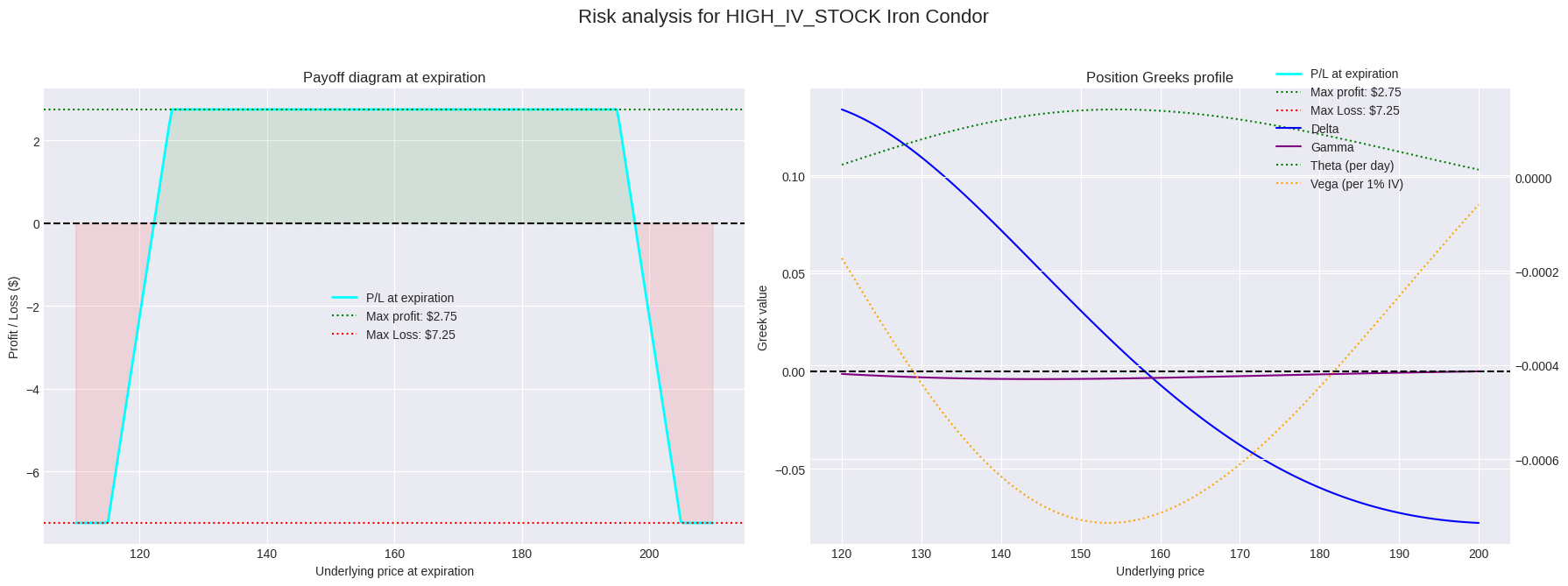 breakeven_up = K3_call_short + Net_CreditThis plot is the classic, static representation. It is essential, but it tells us nothing about the expiration. The next part will explore the dynamics of the position before this final payoff is realized.