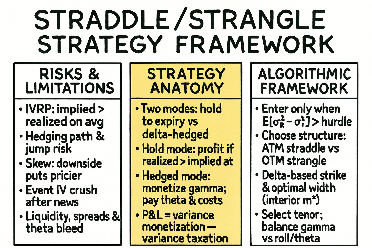 Straddles and strangles, especially when delta-hedged, operate in a different universe. Their risk budget is allocated to variance risk. Their performance driver is not whether the market goes up or down next month, but the magnitude and character of its fluctuations along the way.